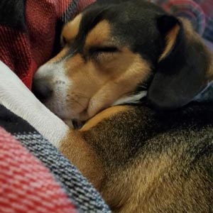 I adopted Maisie (formerly, Amiyah) in December of 2019. She had been overlooked because she has no tail, but that made her stand out to me. After adopting her, we discovered she was also deaf which made her even more special to me. She has been the absolute best addition to my little fur family, and constantly makes me smile.